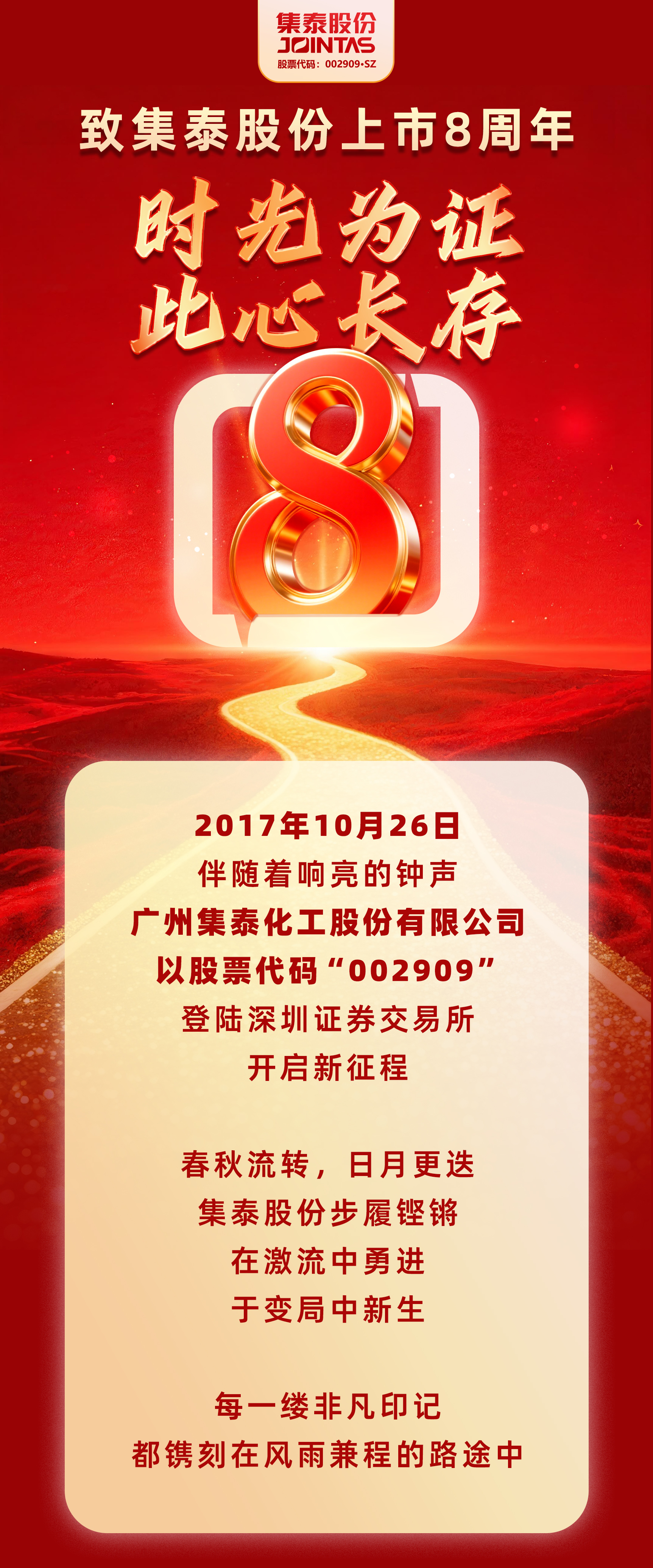 致集泰股份上市8周年——时光为证,此心长存