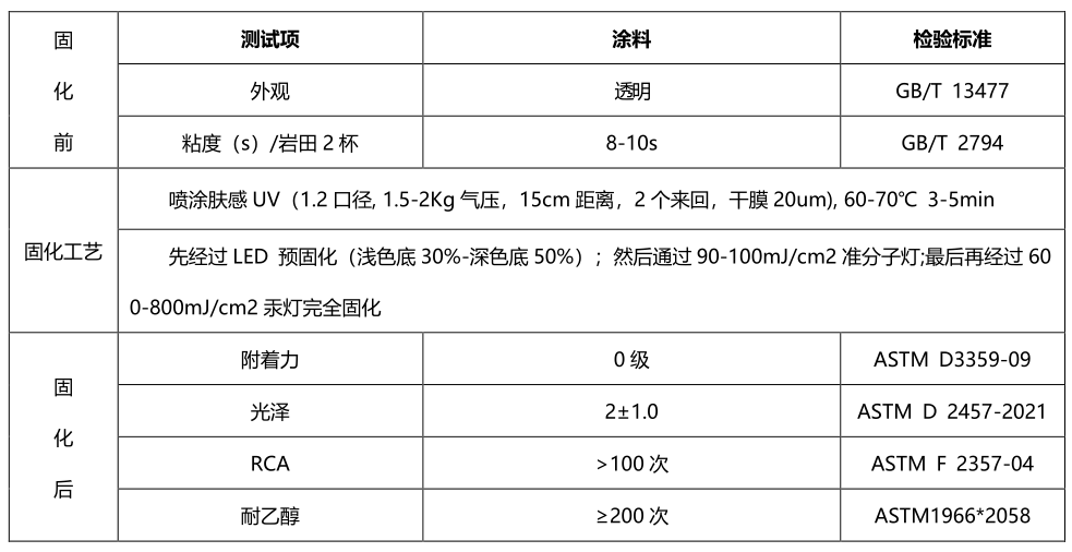 以上性能数据均在上述固化条件推荐下,涂膜按我司规定烘烤固化工艺,室温放置 48h 后方可进行全项性能测试。本公司对测试条件不同或产品改进造成的数据不同不承担相关责任。